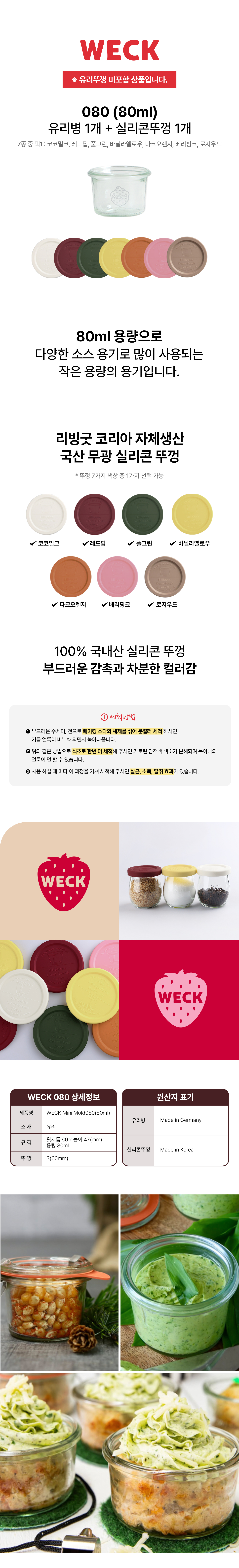 [WECK]미니몰드 080(80ml) 유리병 1개 + 실리콘 뚜껑 1개