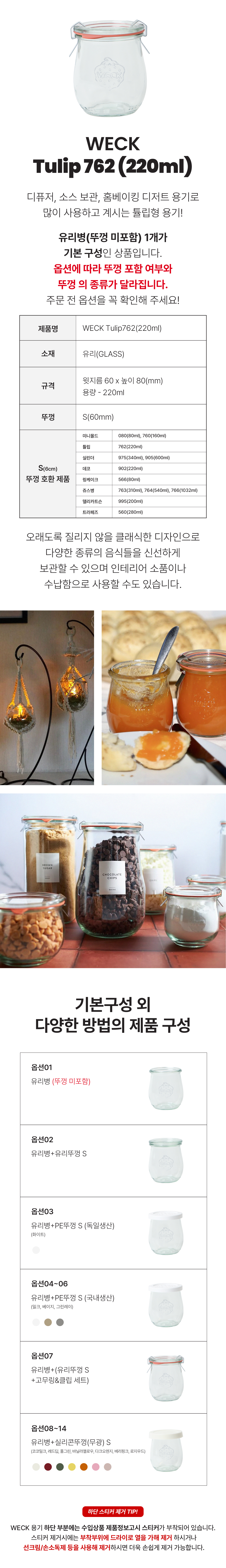 [WECK]튤립 762(220ml) 유리병 낱개 / 뚜껑옵션
