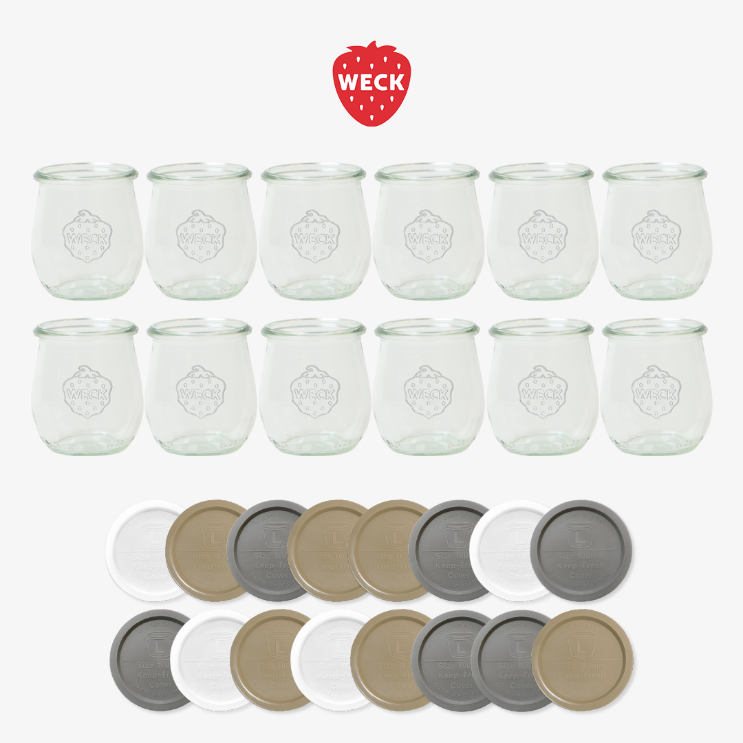 [WECK]튤립 762(220ml) 유리병 12개 + PE뚜껑 16개 세트